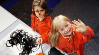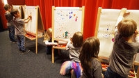 Sude und Marlie, beide fünf Jahre alt, sind mit ihrer Kita "Grüne Soße" zu Besuch im MiniFilmclub des Deutschen Filminstituts, in dem Kinder zwischen vier und sechs Jahren Filmkunst kennenlernen und selber kreativ werden können.