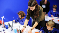 "Hier geht es nicht um das Erklären, sondern das Erleben von Filmkunst", sagt Projektleiterin Britta Yook. Lange Erklärungen würden die Neugierde der Kinder bremsen. Stattdessen ermuntert Yook sie, ihrer Fantasie freien Lauf zu lassen:
