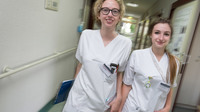 "ZUSAMMEN KÖNNEN WIR VIEL BESSER HELFEN"Im Heidelberger Universitätsklinikum verfolgen die Pflegeschülerin Ann-Catrin Druck und die Medizinstudentin Hannah May ein gemeinsames Ziel: ihre Patienten gemeinsam besser zu versorgen. Obwohl sie noch in der Ausbildung sind, lernen die beiden jungen Frauen schon jetzt, wie die verschiedenen Berufsgruppen im Krankenhaus besser zusammenarbeiten können.