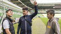 "Deshalb wollen wir hier im Stadion darüber reden, denn der Fußball kann Türen zu Themen öffnen, mit denen sich die Kinder sonst nicht beschäftigen", sagt Vanessa Maas, Projektleiterin des Lernzentrums OstKurvenSaal von Werder Bremen.